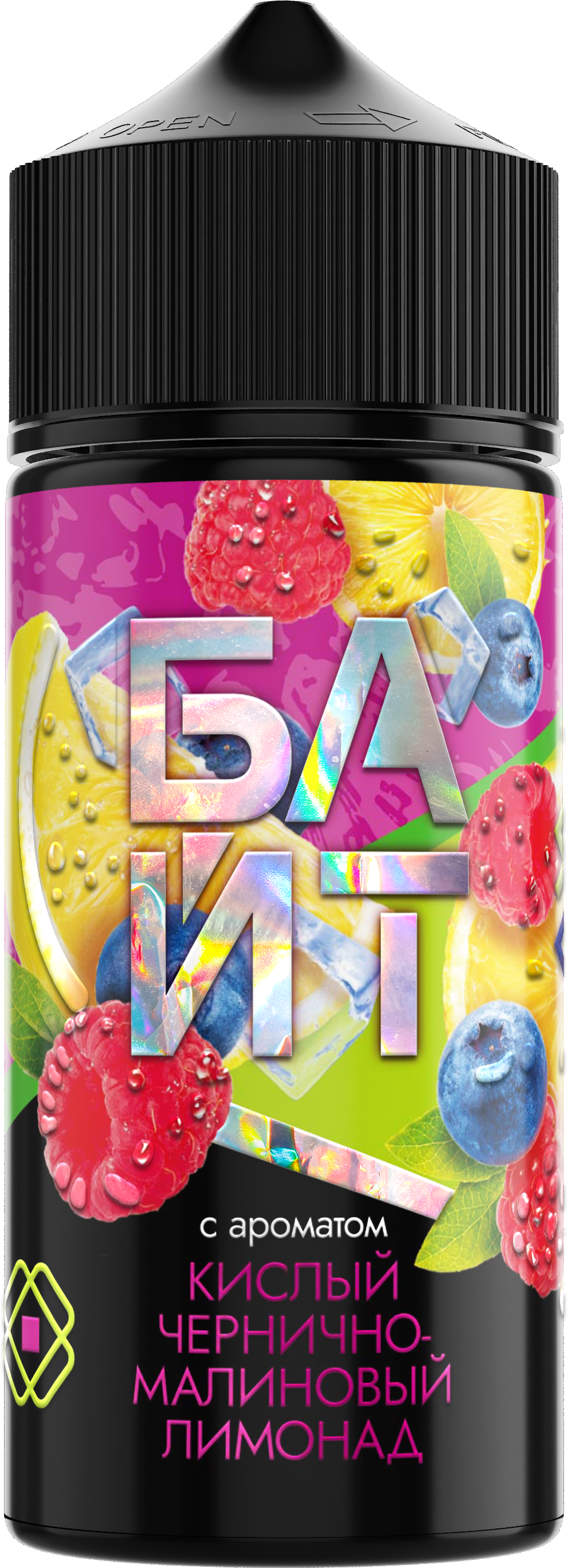 БАЙТ Кислый чернично-малиновый лимонад - ароматизатор для вейпа в объёме 37 мл. Для получения готовой для использования жидкости нужно добавить только глицерин (VG), на выходе получится 120 мл.