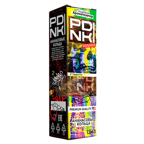 Pdnki Ананасовые кольца - ароматизатор для вейпа в объёме 13 мл. Для получения готовой для использования жидкости нужно добавить только глицерин (VG).
