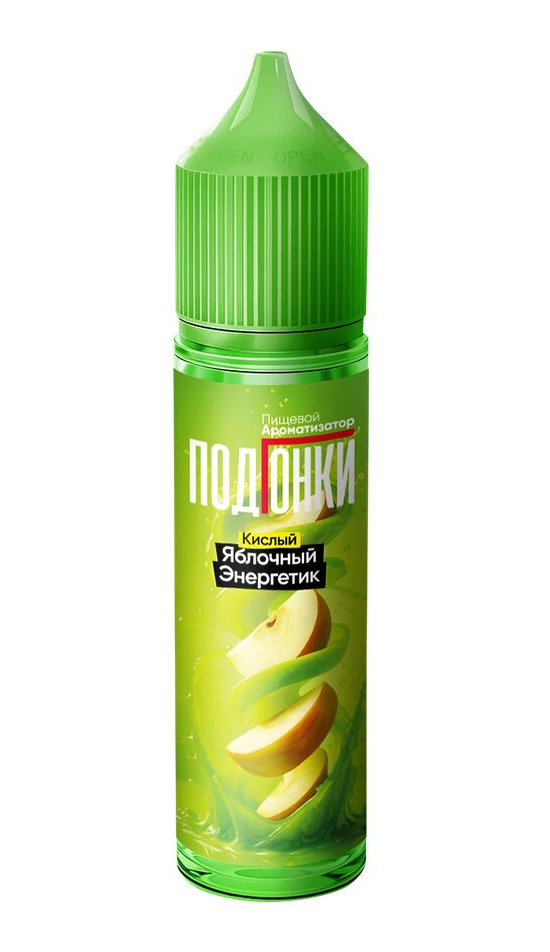 PODONKI ПОДГОНКИ Кислый яблочный энергетик - ароматизатор для вейпа в объёме 13 мл. Для получения готовой для использования жидкости нужно добавить только глицерин (VG).