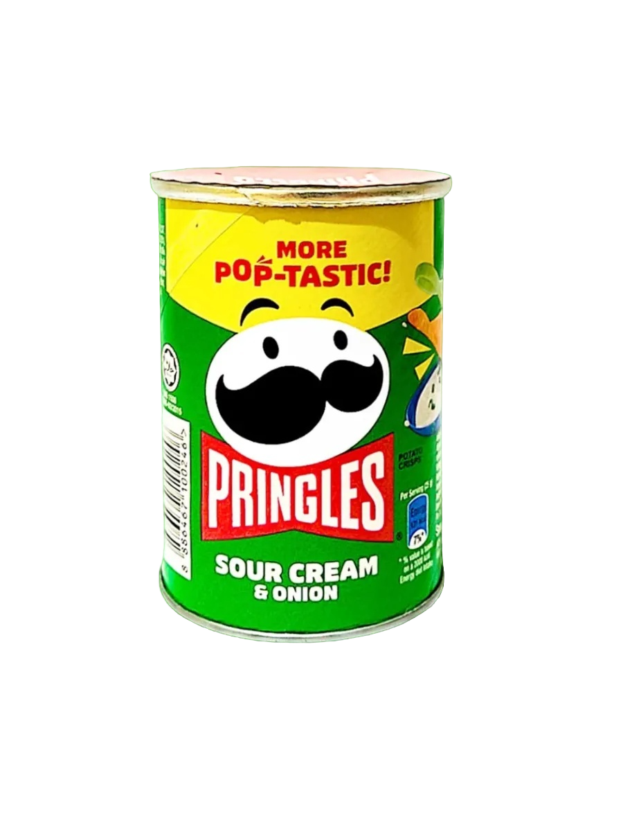 Чипсы Pringles Sour Cream & Onion - картофельный снек с насыщенным вкусом весом 42 гр. Произведён в Малайзия. В одной упаковке 12 банок.