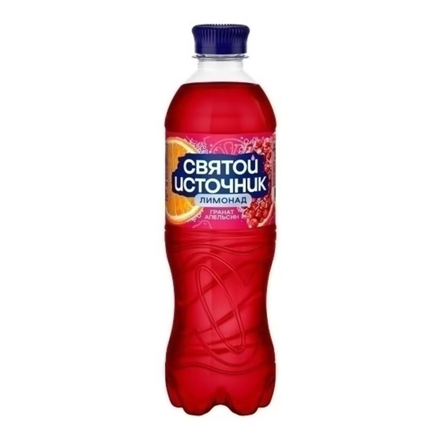 Святой Источник Лимонад Гранат - Апельсин - газированный безалкогольный напиток объёмом 500 мл. Произведён в России. Одна упаковка содержит 12 ПЭТ бутылок.