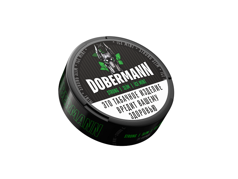 DOBERMANN SLIM Ice Mint - жевательный табак весом 9 гр. Шайба содержит 20 паучей высококачественного табака высокой крепости.