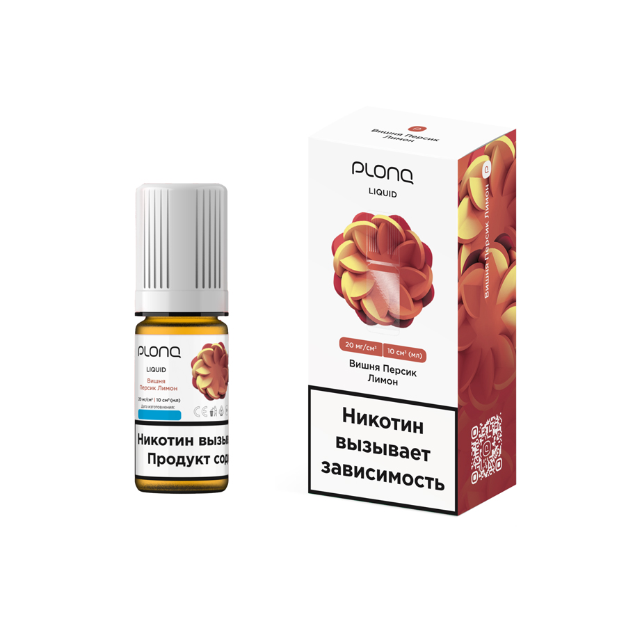 Жидкость Plonq - ВИШНЯ ПЕРСИК ЛИМОН поставляется в объёме 10 мл. Соотношение PG/VG в составе составляет 50/50.