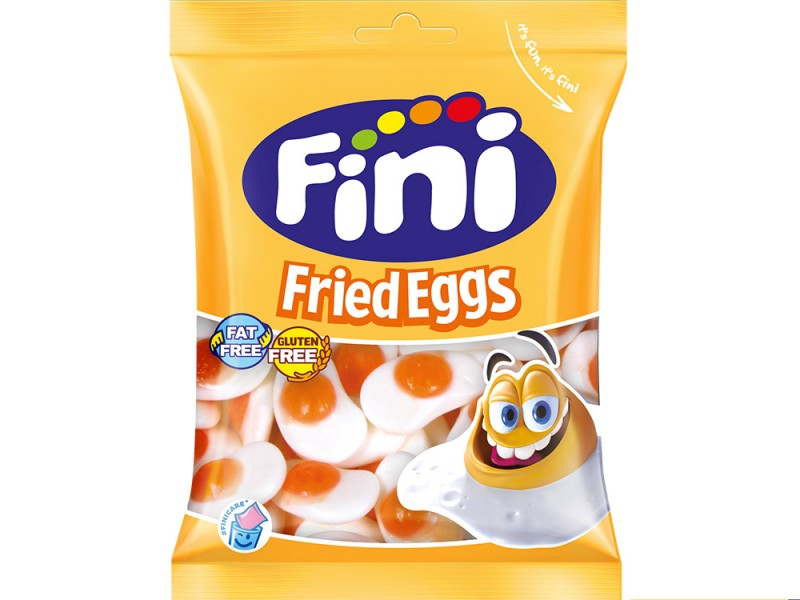 Fini Fried Eggs - жевательный мармелад с ярким вкусом весом 90 гр. В своём составе имеет ингредиенты, соответствующие европейским стандартам качества. Произведён в Испании. В одной упаковке 12 шт.
