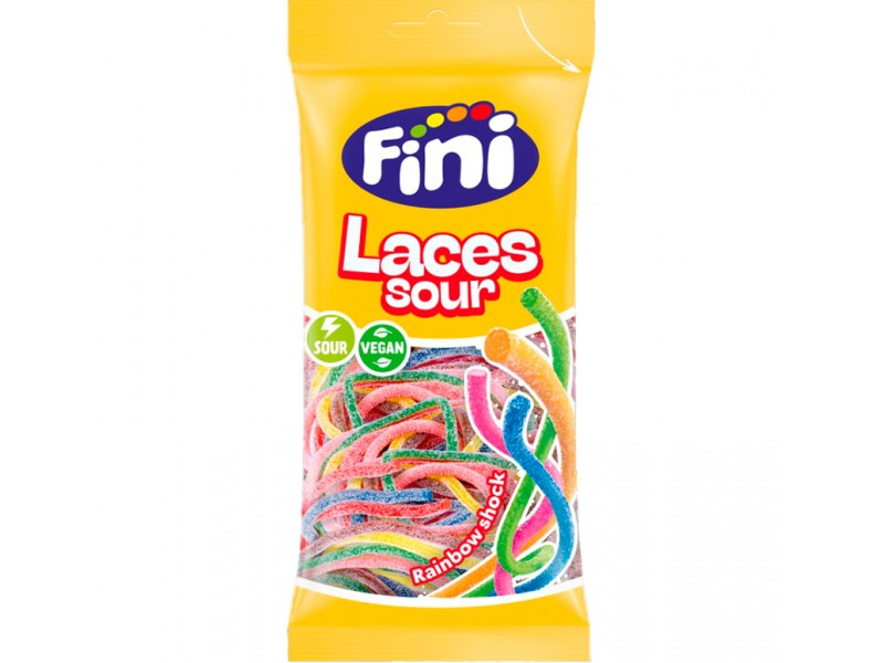 Fini Laces Sour Rainbow Shock - жевательный мармелад с ярким вкусом весом 90 гр. В своём составе имеет ингредиенты, соответствующие европейским стандартам качества. Произведён в Испании. В одной упаковке 12 шт.