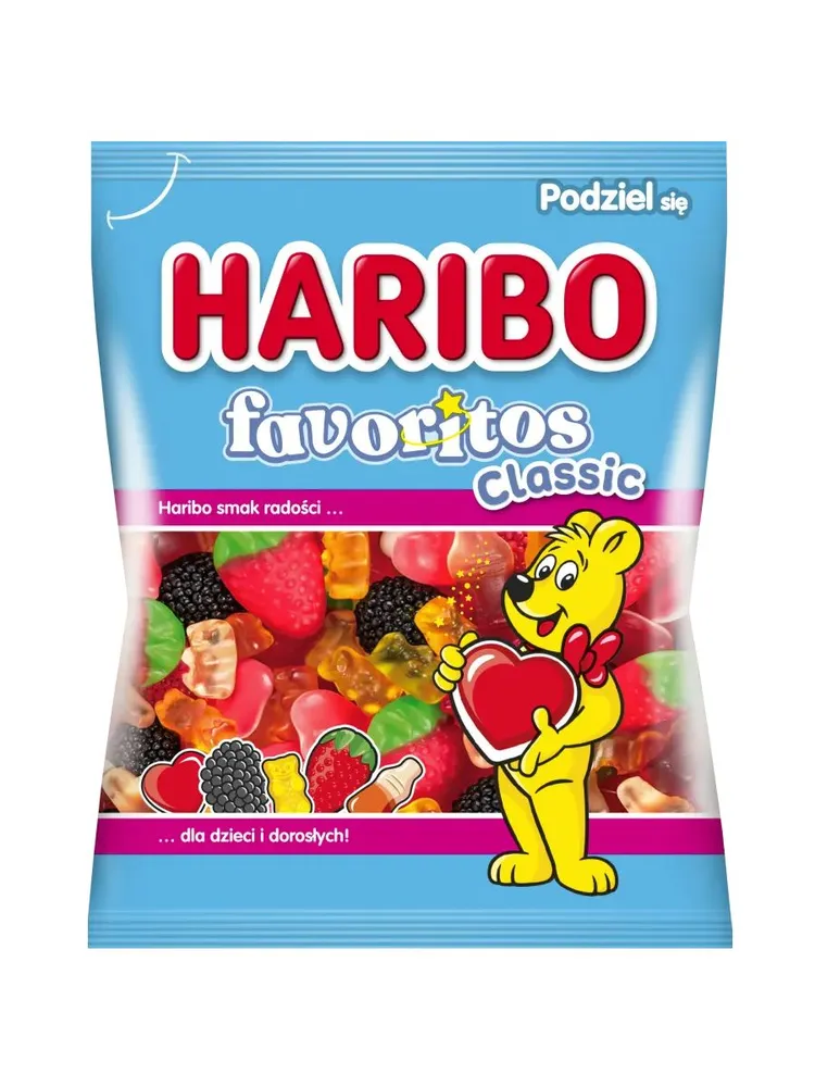 Haribo Favoritos Classic - жевательный мармелад весом 90 гр. В своём составе имеет натуральные соки. В одной упаковке 18 шт.