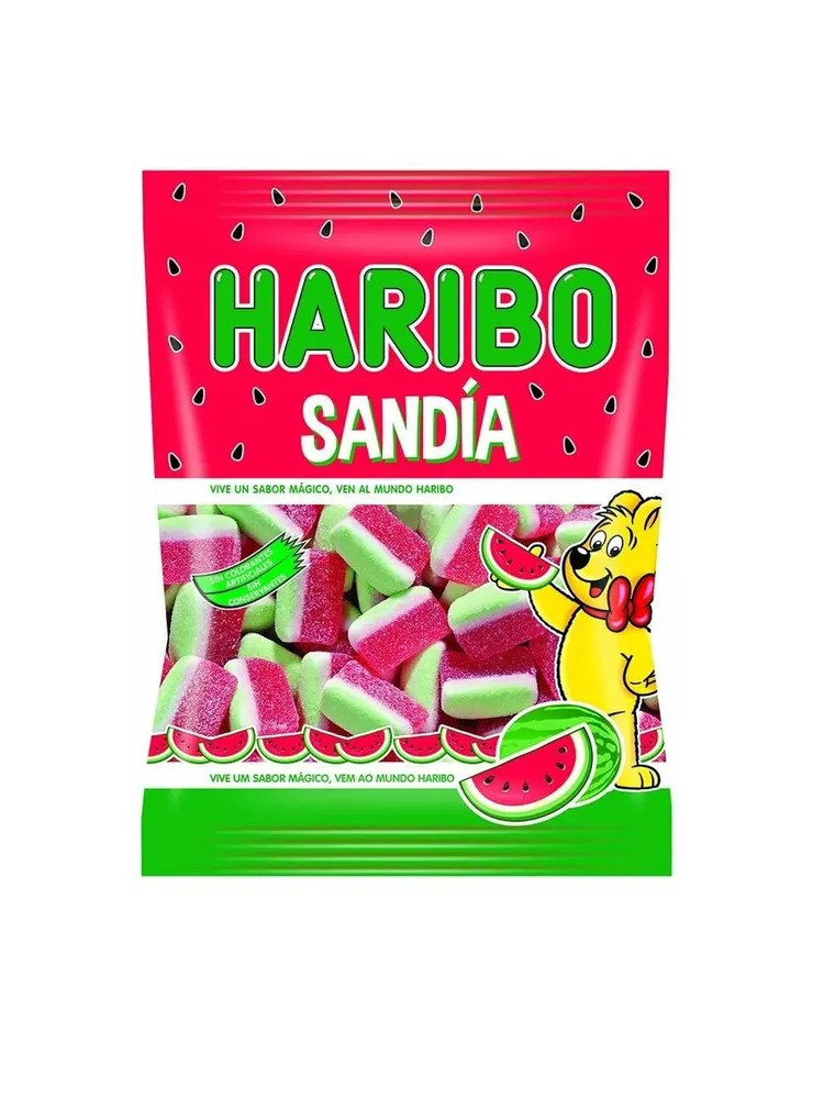 Haribo Sandia - жевательный мармелад весом 90 гр. В своём составе имеет натуральные соки. В одной упаковке 18 шт.