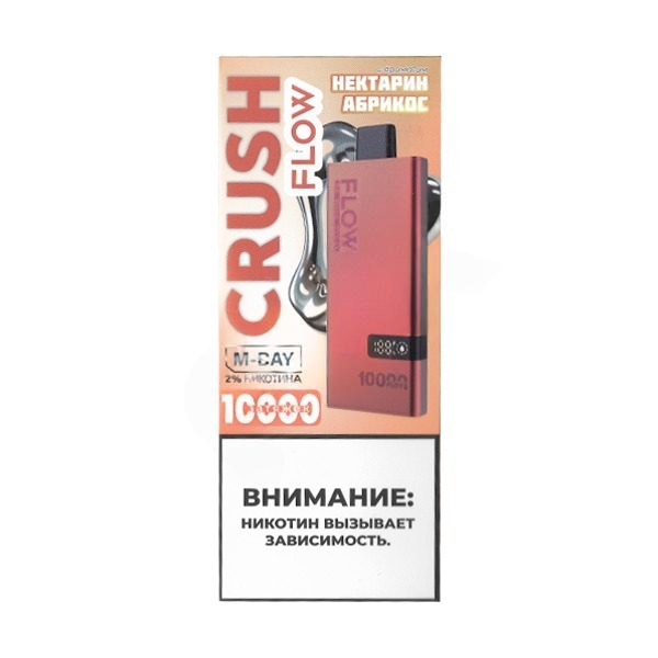 Одноразка FLOW M-BAY Нектарин Абрикос рассчитана на 10000 тяг. Тонкий корпус девайса выполнен из алюминия. На лицевой части устройства расположен экран с индикацией заряда и оставшегося объёма жидкости. В бак предзаправлено 10 мл жидкости. Ёмкость встроенного АКБ составляет 500 mAh.