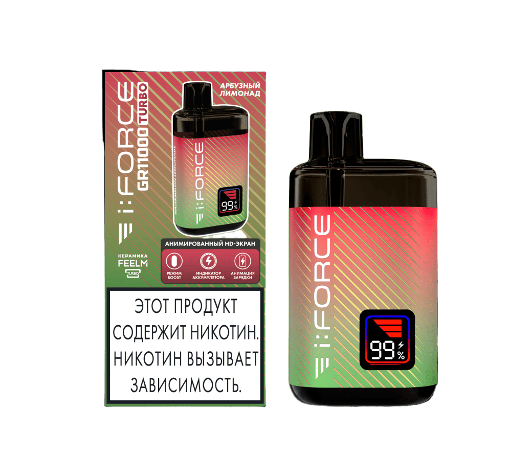 Описание одноразовых электронных сигарет i:FORCE GR11000 TURBO - Арбузный Лимонад