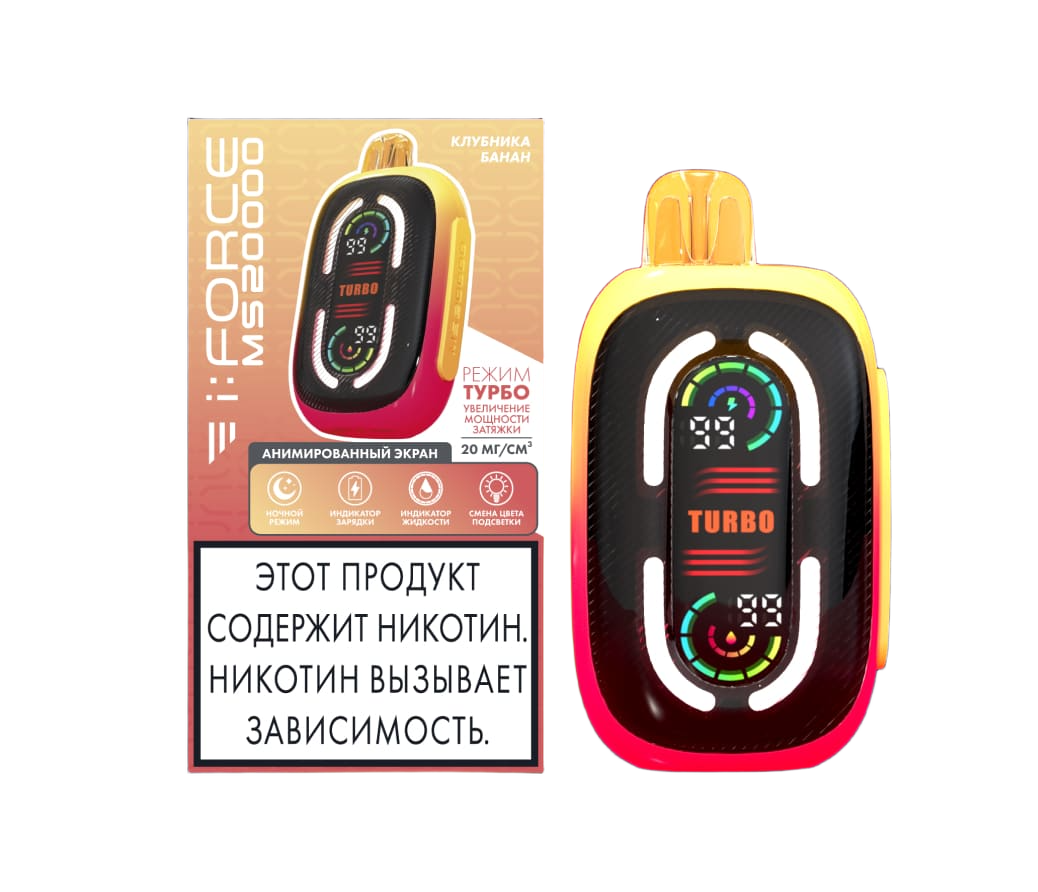 Описание одноразовых электронных сигарет i:FORCE MS20000 - Клубника Банан