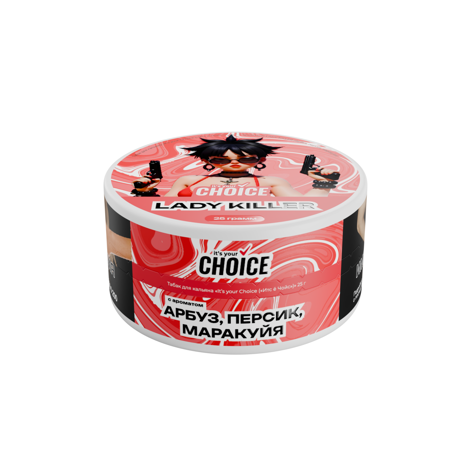 Табак для кальяна It’s your Choice - Lady Killer поставляется в весе 25 гр. Имеет среднюю дымность и среднюю крепость. Производится из табачного листа сорта Burley.